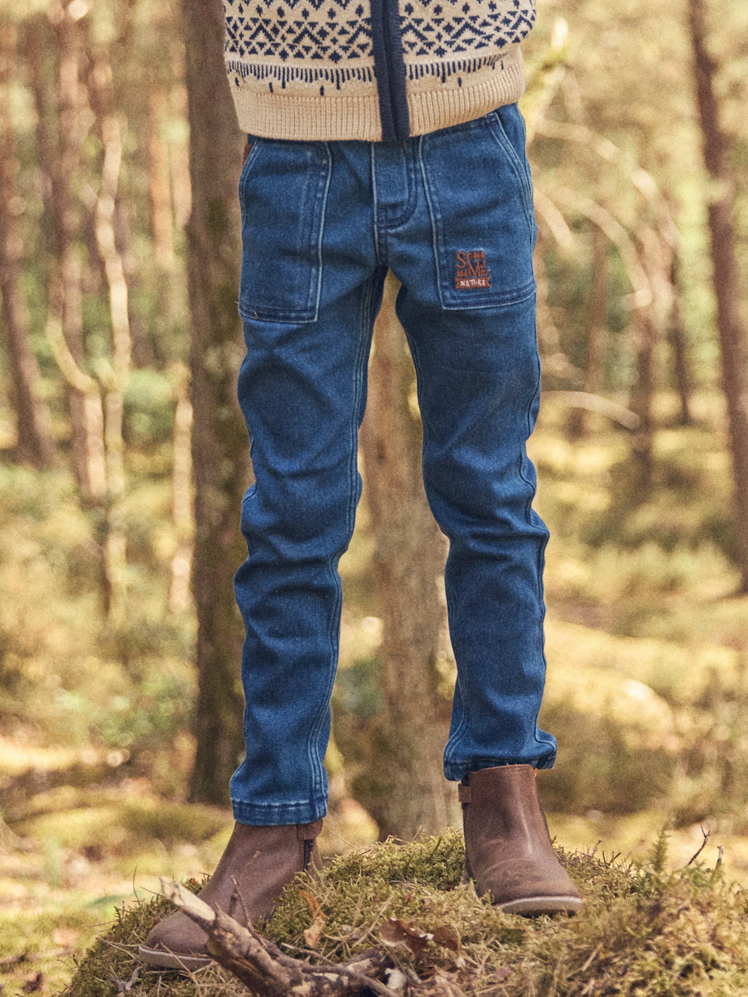 Sweat à capuche zippé bleu foncé et marron Garçon