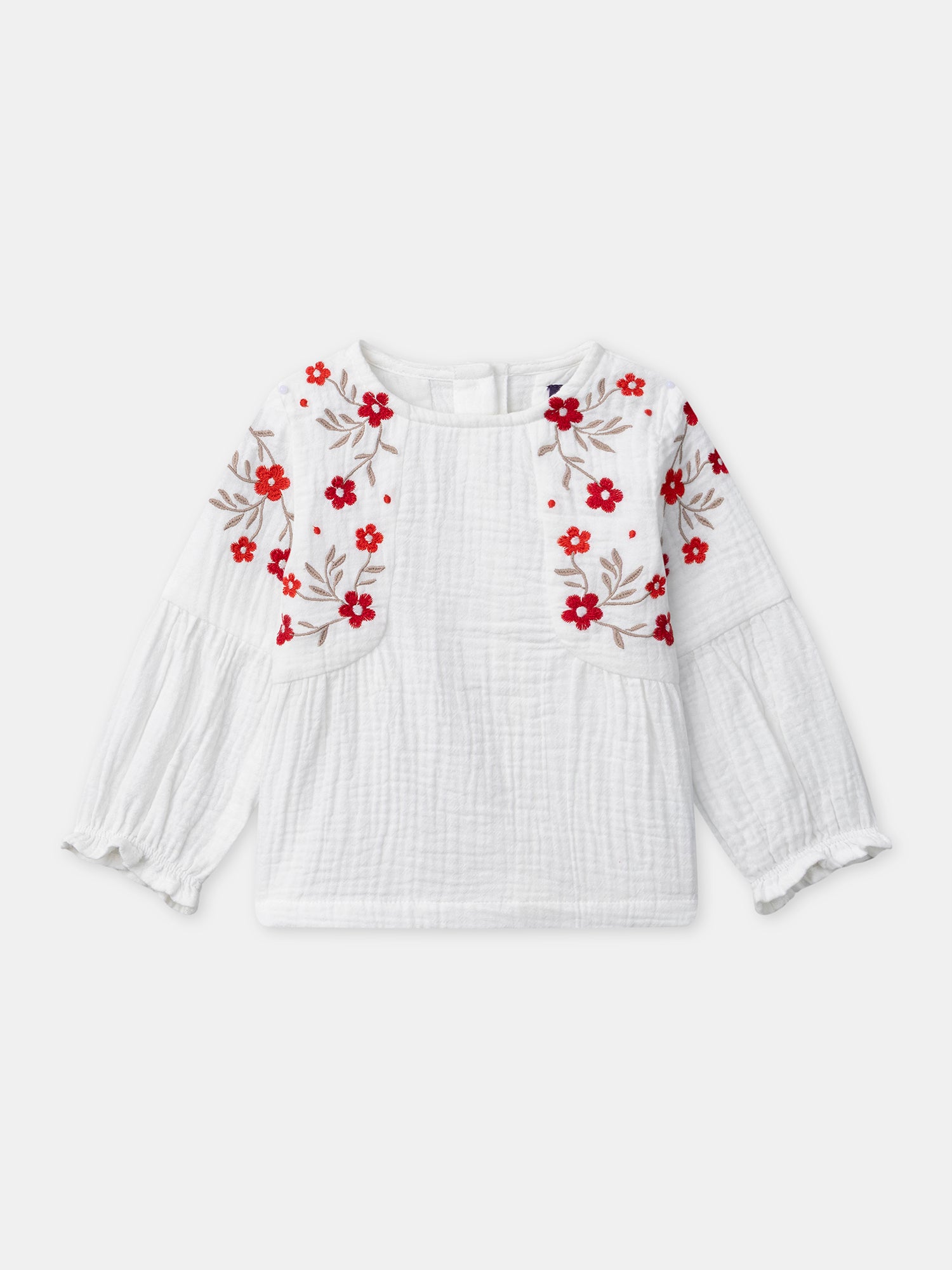 Blouse écru à broderie fleurs Bébé Fille