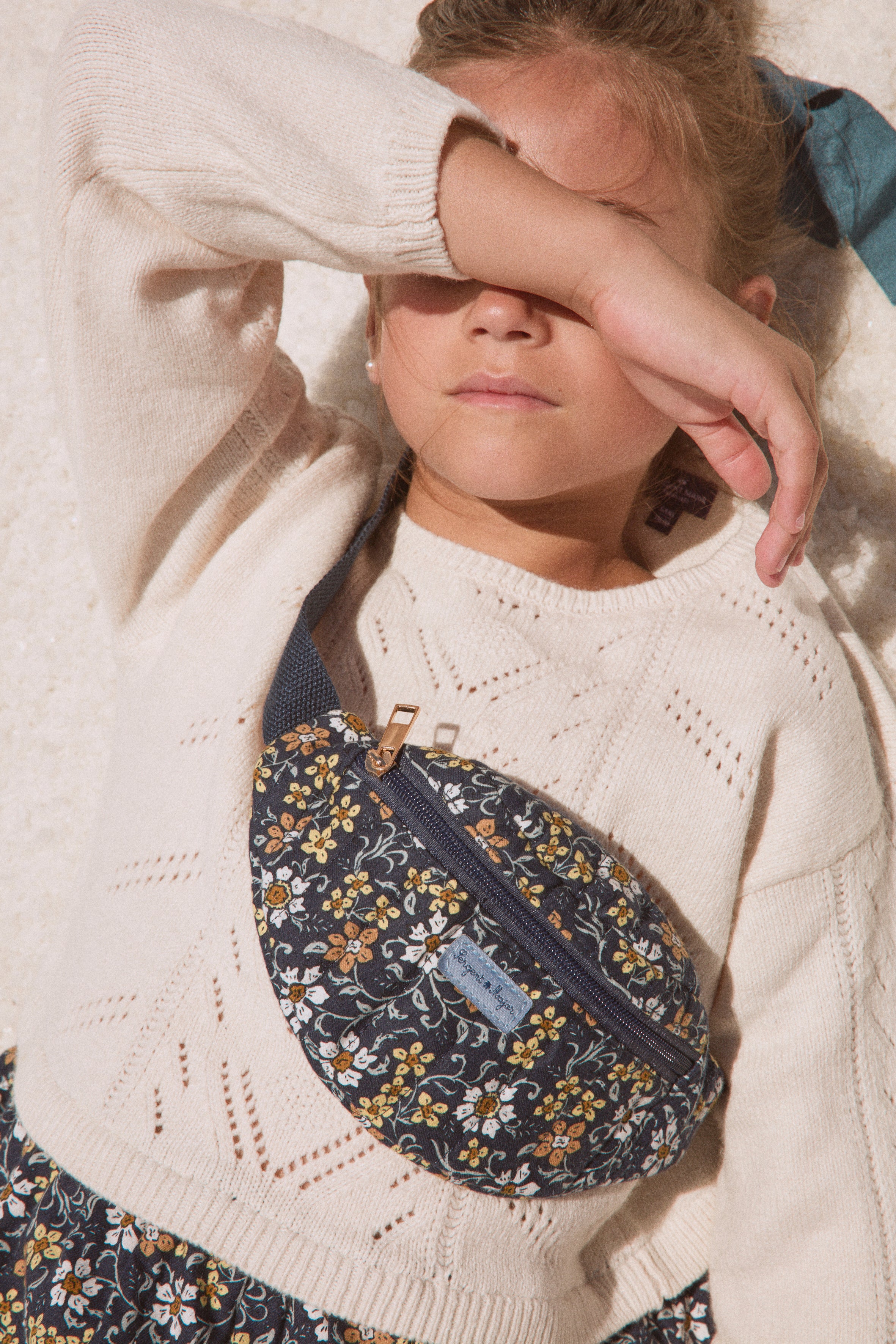 Côté filles, des fleurs s’épanouissent sous le ciel d’hiver dans des teintes de bleu profond et de jaune solaire.