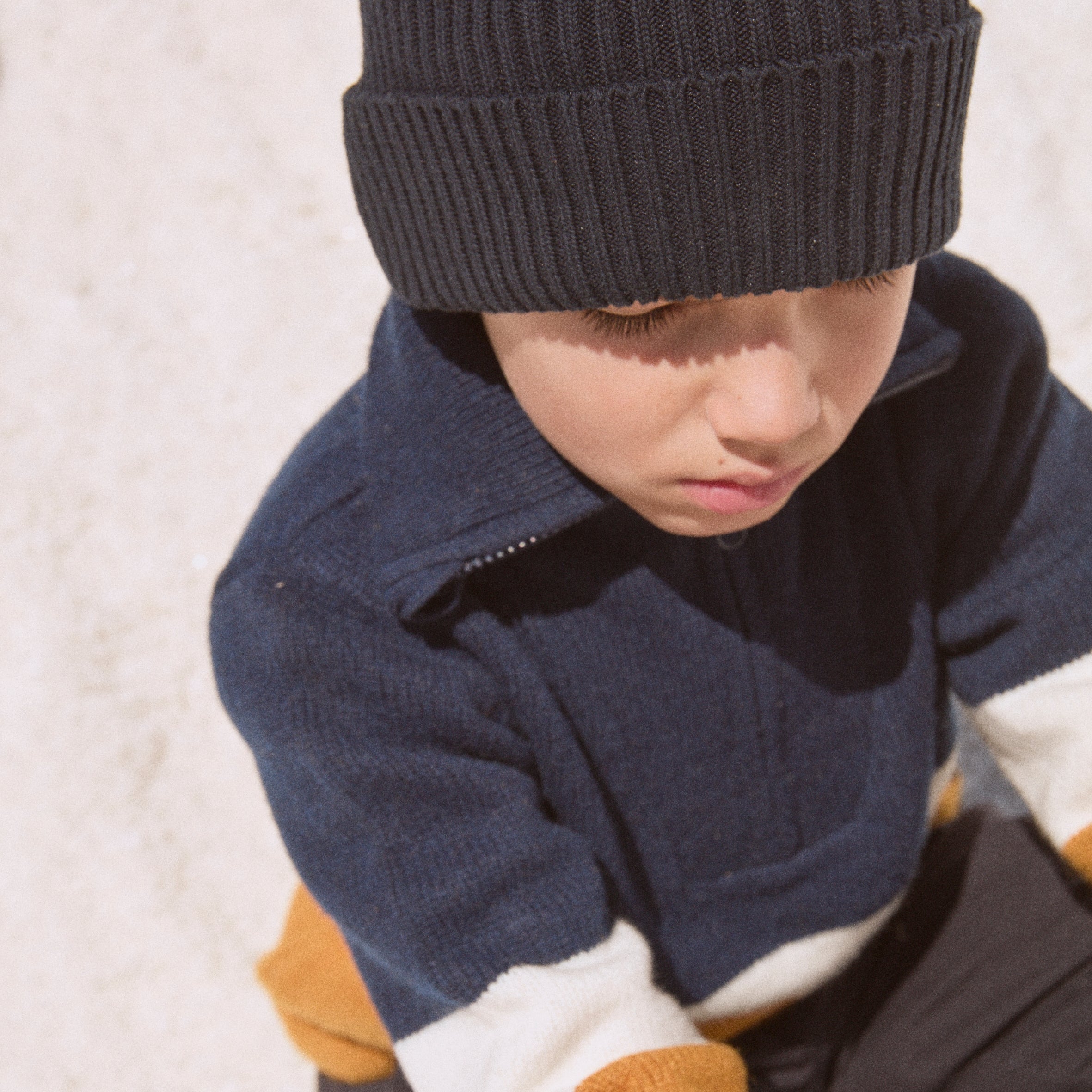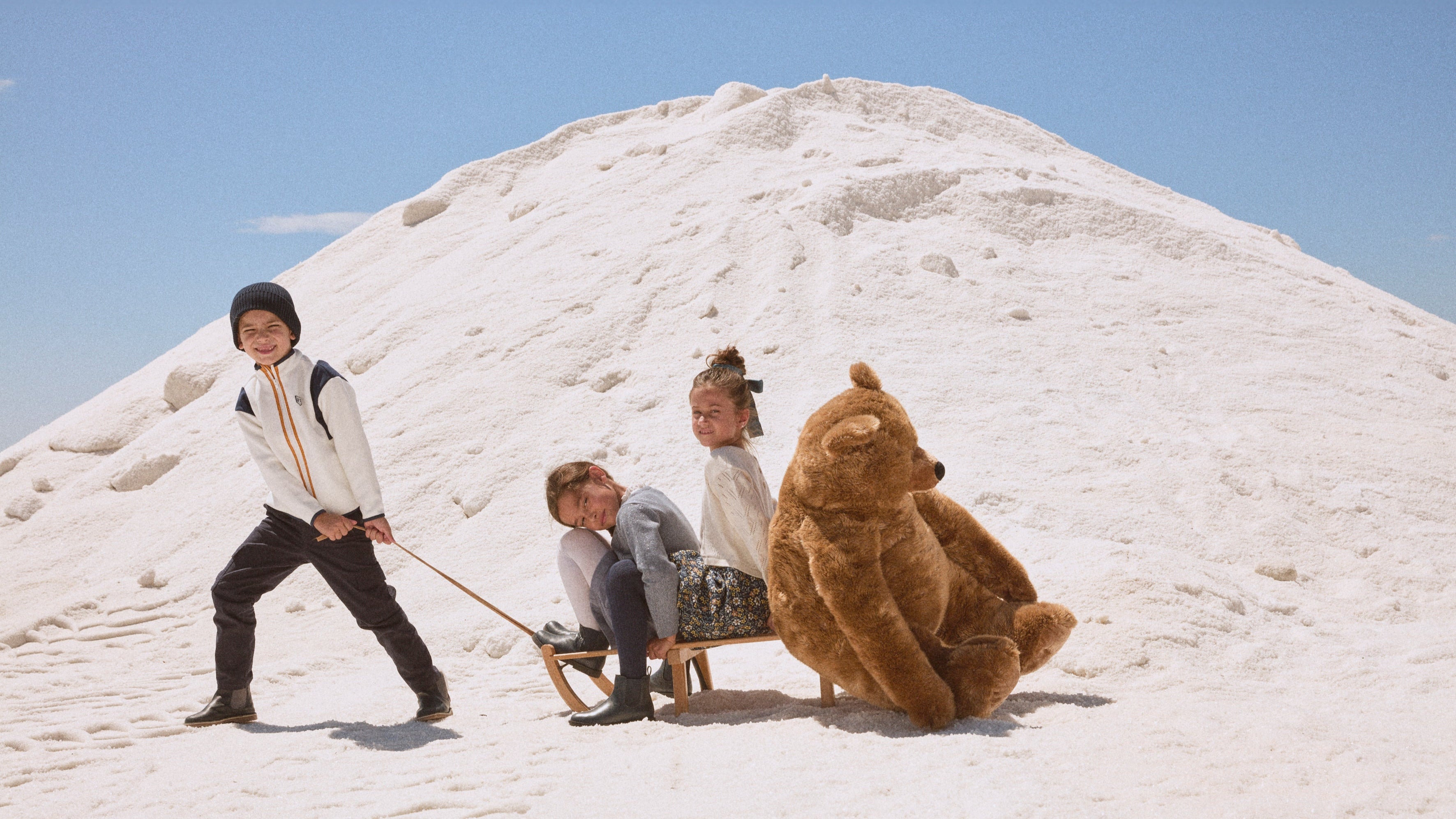 La Collection capte cette énergie : entre ville et cour d’école, les couleurs chaleureuses rencontrent un denim intemporel.