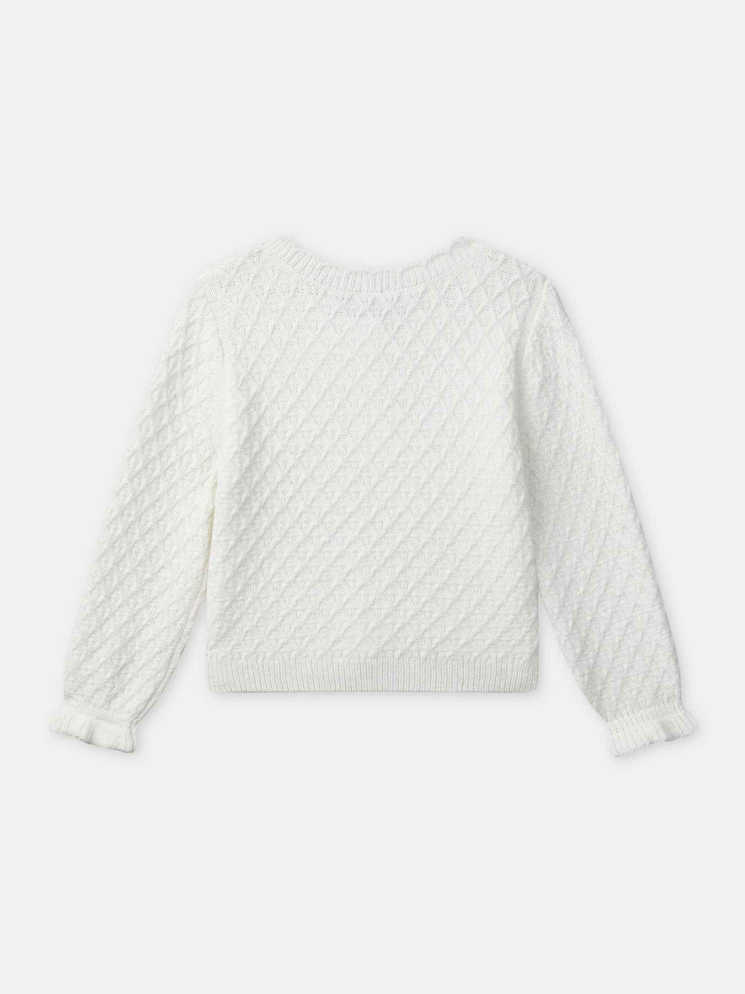 Pour les petites filles douces des saisons fraîches, ce cardigan en maille blanc allie confort et charme. Il souvre facilement grâce à ses boutons sur le devant et offre deux poches avant ornées de broderies florales. Les finitions soignées au bas des manches apportent une touche délicate à ce modèle.