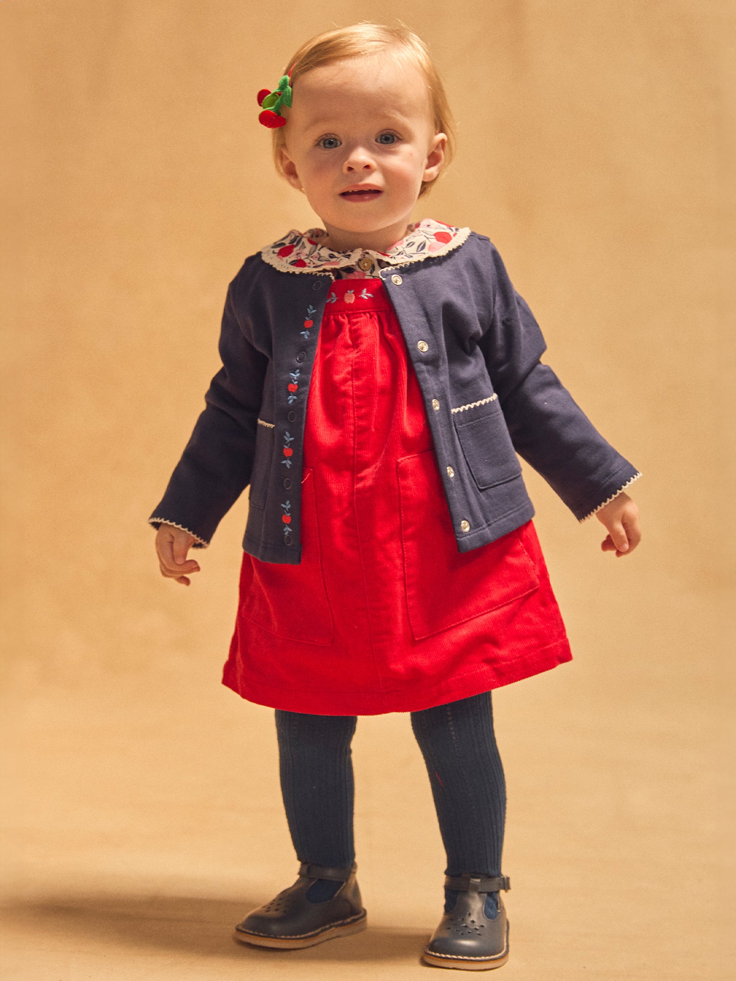 Cardigan bleu marine à broderies pommes Bébé Fille