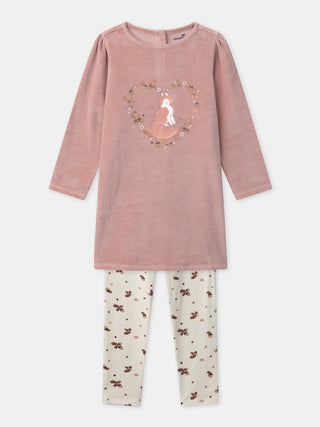 Chemise de nuit rose en velours imprimé renard et glands Fille