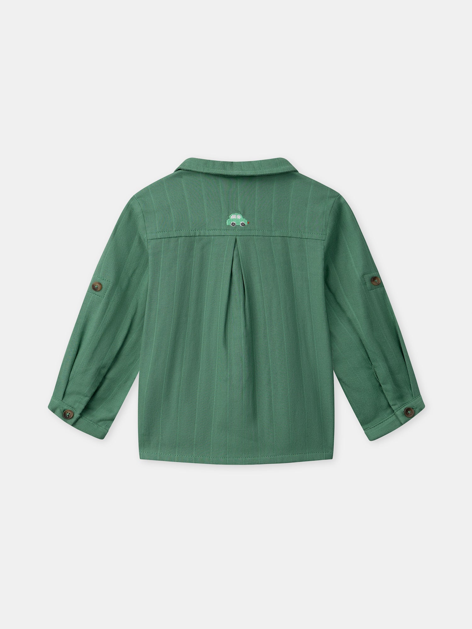 Pour les petits aventuriers du printemps, cette chemise en double gaze verte offre douceur et légèreté. Elle s'enfile facilement grâce à son ouverture boutonnée et ses manches peuvent se retrousser pour plus de praticité. Sa poche plaquée et ses broderies de voiture sur le buste et le dos l'emmènent dans un univers plein d'imaginaire et dévasion.