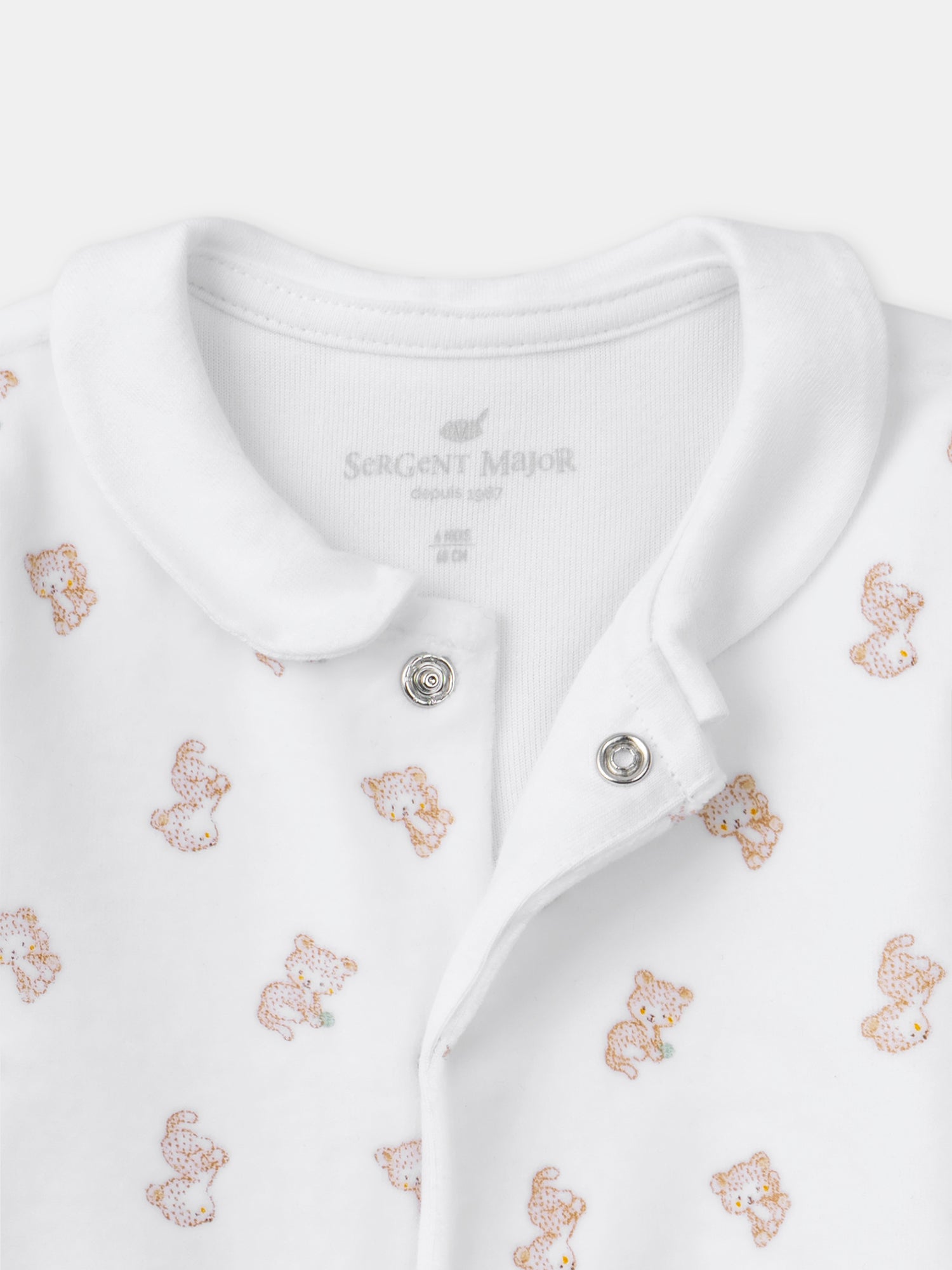 - Imprimé léopards dans les tons noisette et vert amande sur fond écru