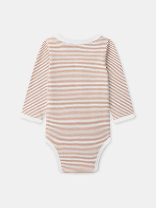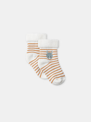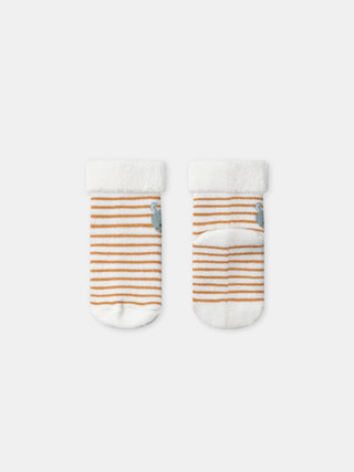 - Paire de chaussettes en coton bouclettes à fines rayures écrues et caramel