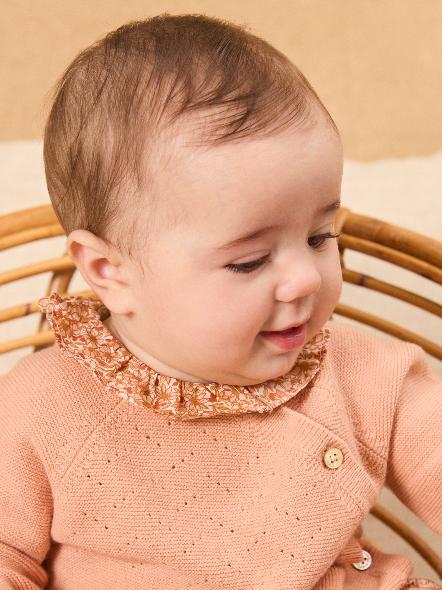 - Col volanté en popeline avec imprimé fleuri dans les tons rose poudré, orangé, groseille, corail et brun doux sur fond écru