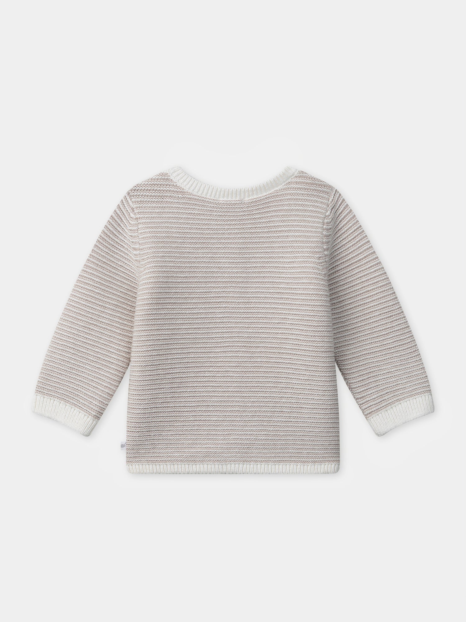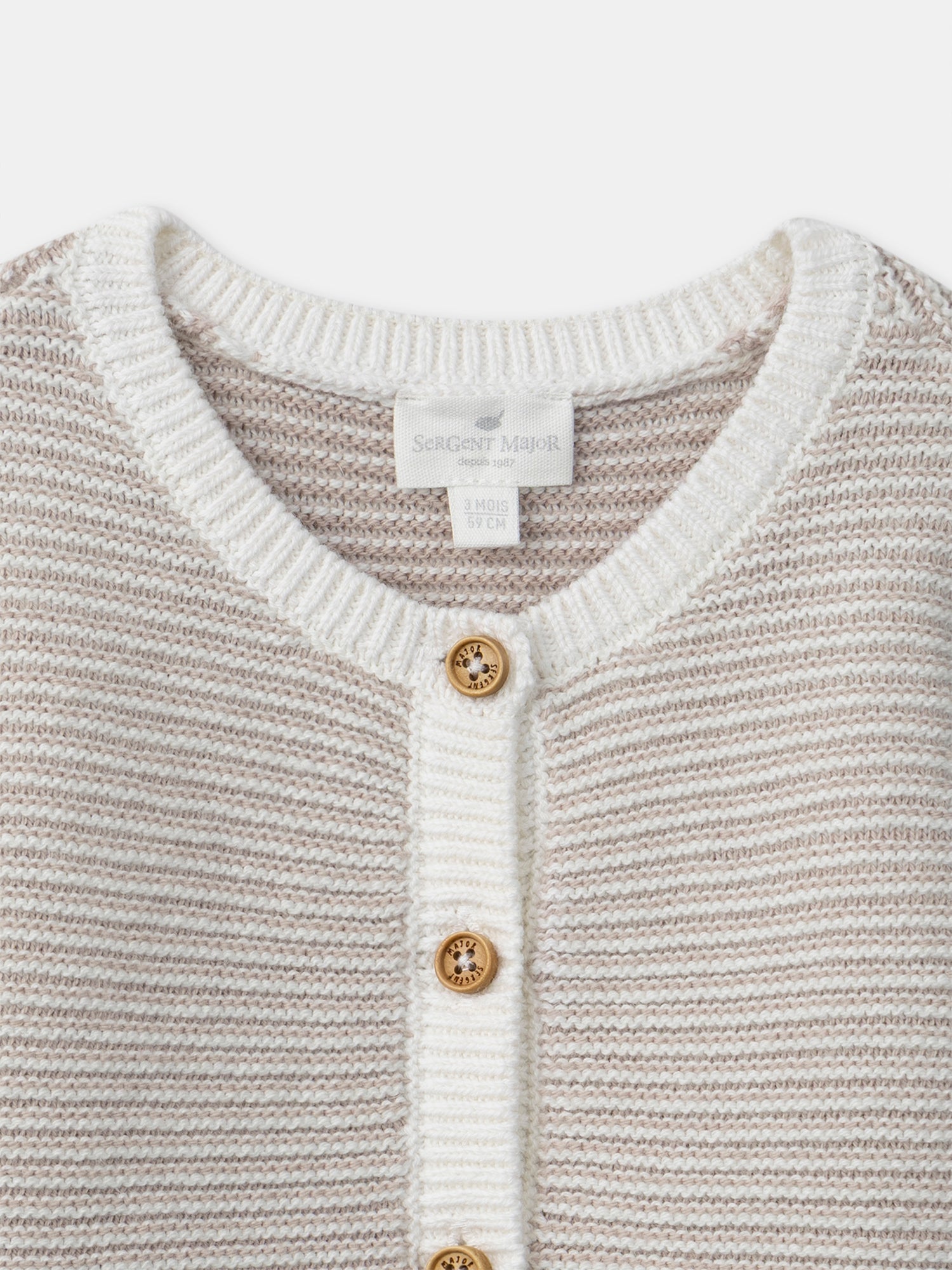 - Finition bord-côte à la taille, au bas des manches, au col et le long de l'ouverture avant de couleur écrue