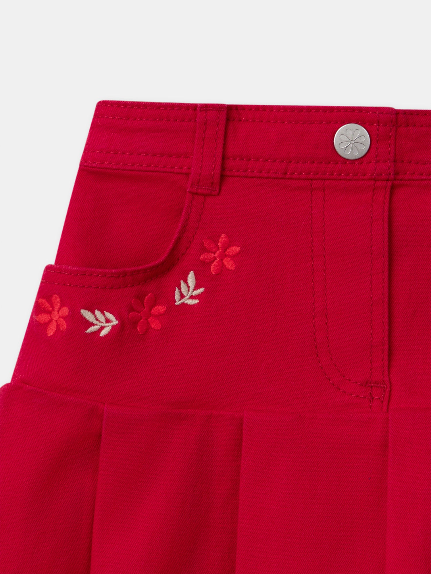 Pour les filles actives et pleines de charme, cette jupe en jean plissée est idéale pour les saisons intermédiaires. Sa taille élastiquée avec élastiques ajustables assure un confort personnalisé, complété par une ouverture zippée sur le devant pour les plus grandes tailles. Les deux poches latérales brodées apportent une touche pratique et stylée à ce modèle tendance.