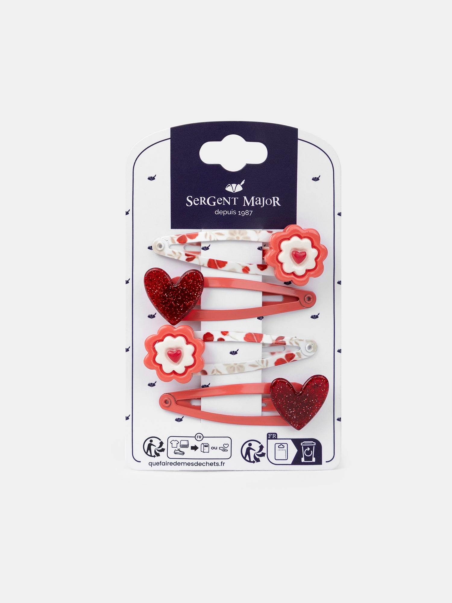 Lot de 2 paires de barrettes rouge fleurs ou cœurs Fille