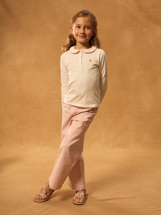 Pour les enfants audacieuses, la coupe ample et souple facilite les déplacements. La broderie cœur apporte douceur et féminité.