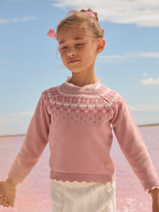 Pull rose à motif jacquard Fille