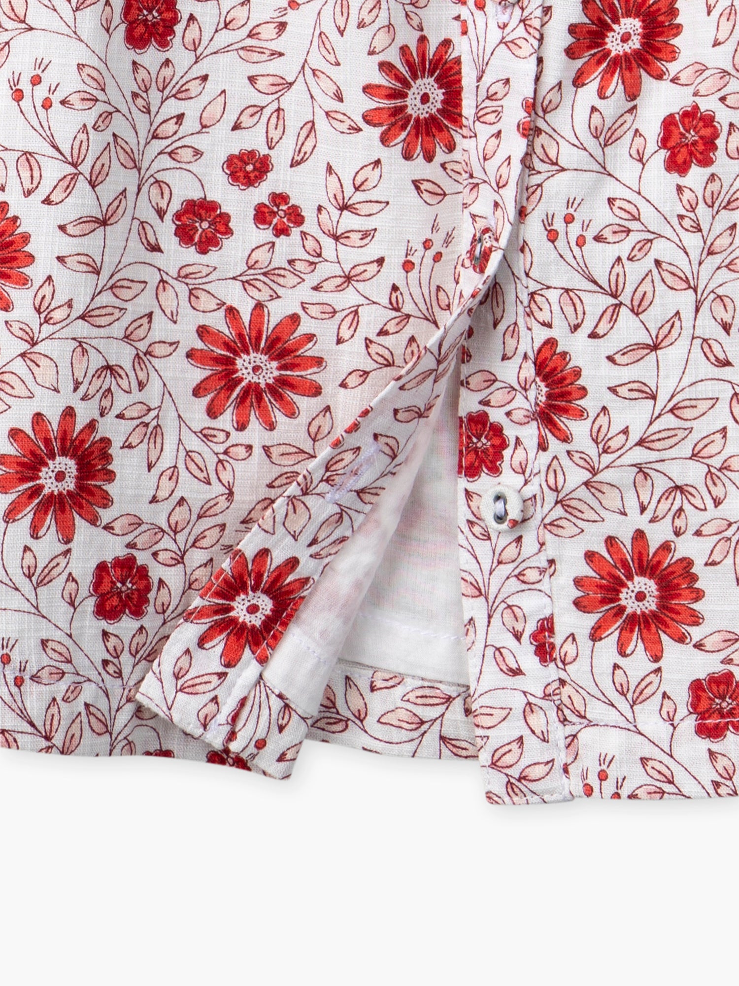 - Imprimé fleur rose clair et rouge sur fond écru