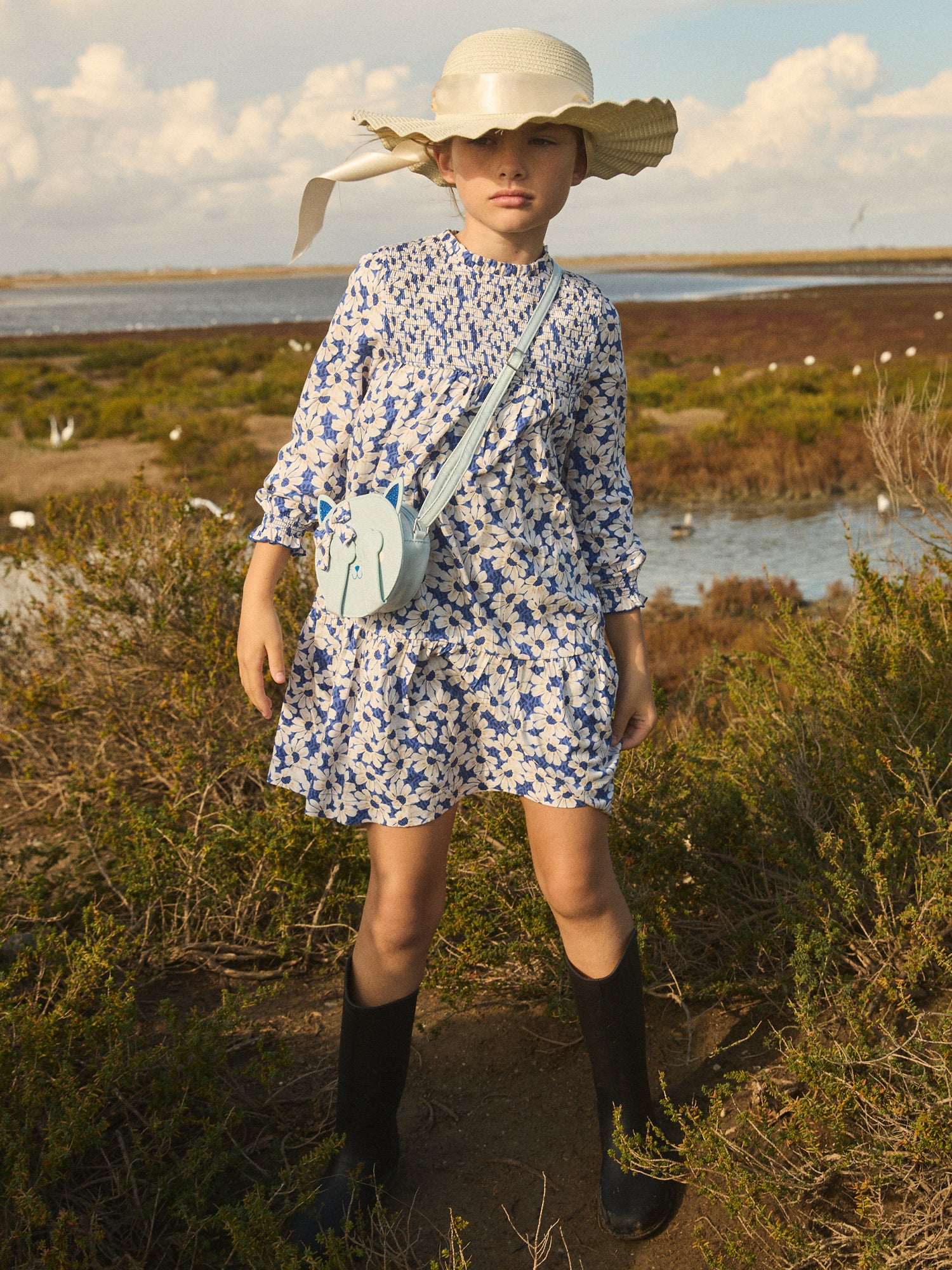 Parfaite pour les petites aventurières romantiques, cette robe fleurie est idéale pour les journées printanières. Avec ses smocks délicats à la poitrine et aux manches, sa doublure en coton garantit confort et légèreté. L'ouverture boutonnée dans le dos apporte une touche pratique à ce vêtement au charme intemporel.