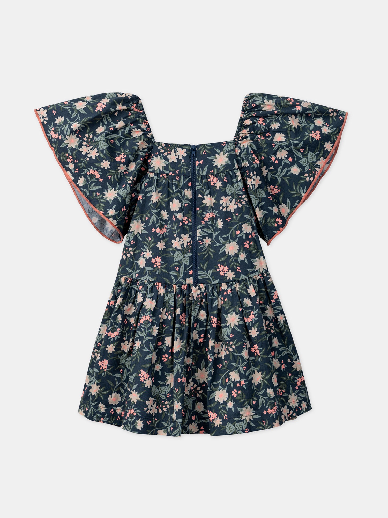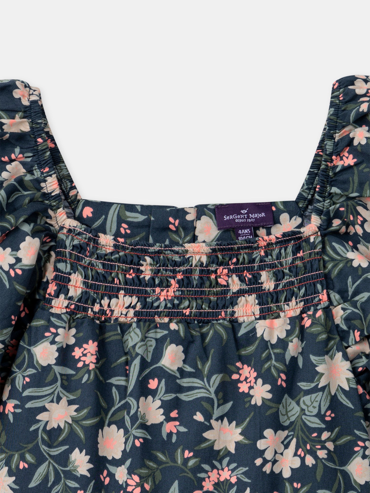 Cette robe fleurie à volants est parfaite pour les petites filles rêveuses, idéale pour les journées ensoleillées. Son smock au niveau de la poitrine et ses volants délicats sur les épaules apportent une touche de légèreté et d'élégance, tandis que la doublure en coton assure confort et douceur. Louverture zippée dans le dos facilite lhabillage, ajoutant une finition pratique et raffinée.
