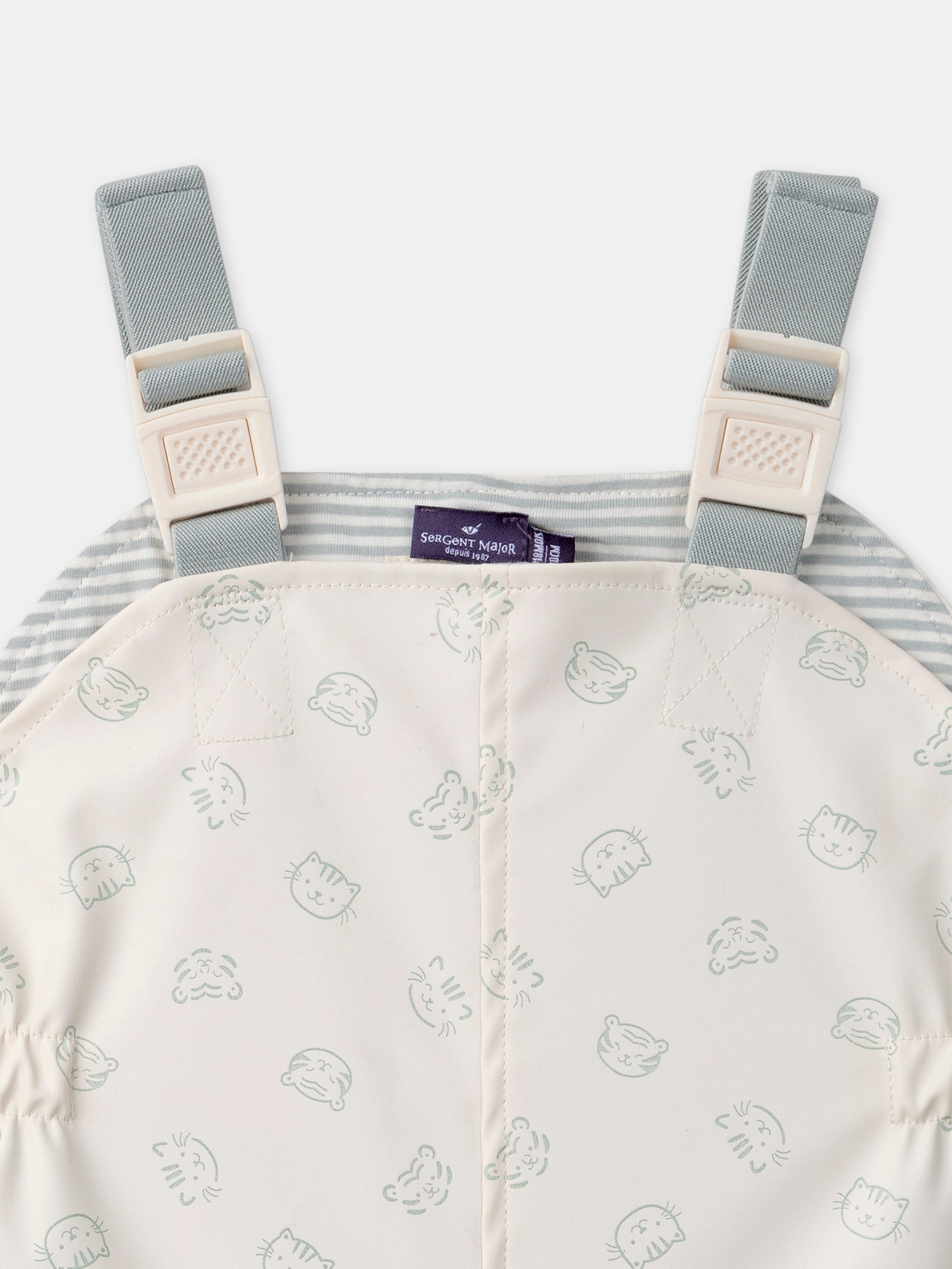 Pantalon de pluie imprimé chats vanille et vert de gris.