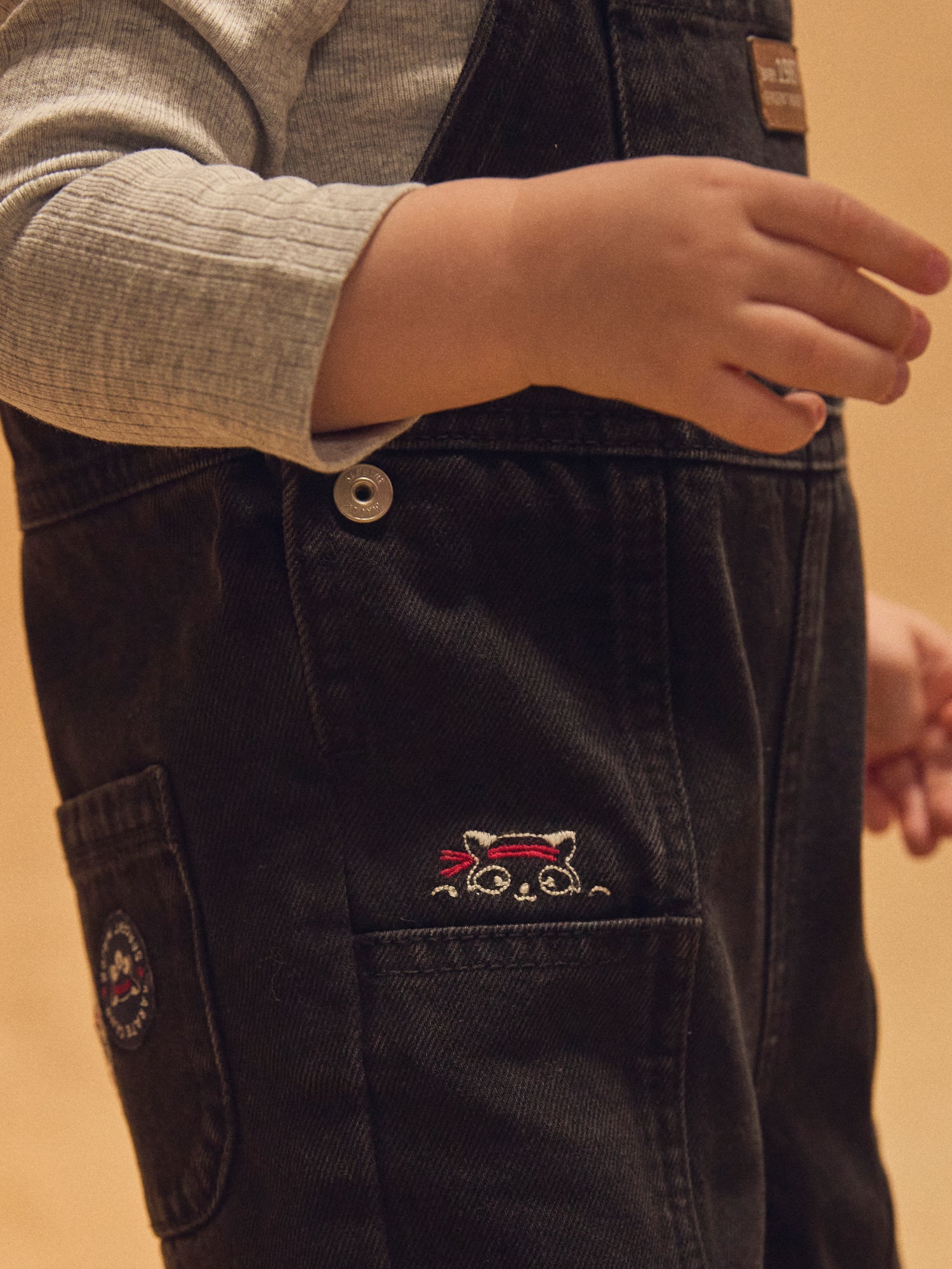 Salopette en jean noir à broderie raton laveur Bébé Garçon