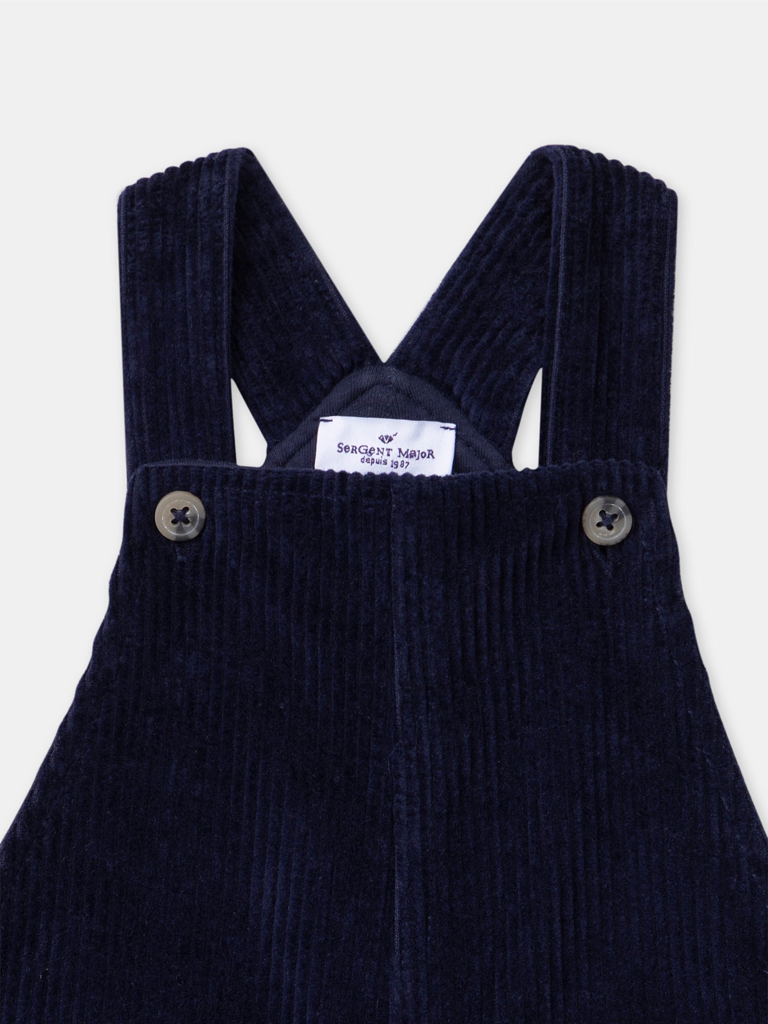 Cette salopette en velours côtelé est idéale pour les fêtes avec ses détails brodés de rennes de Noël et de houx sur les poches avant, ornées dune vignette étoile en daim. Sa doublure intégrale assure chaleur et confort, tandis que les bretelles ajustables et louverture entrejambe par boutons à pression facilitent lhabillage. Au dos, un jacron en daim "Baby Sergent Major 1987" ajoute une touche authentique et élégante.