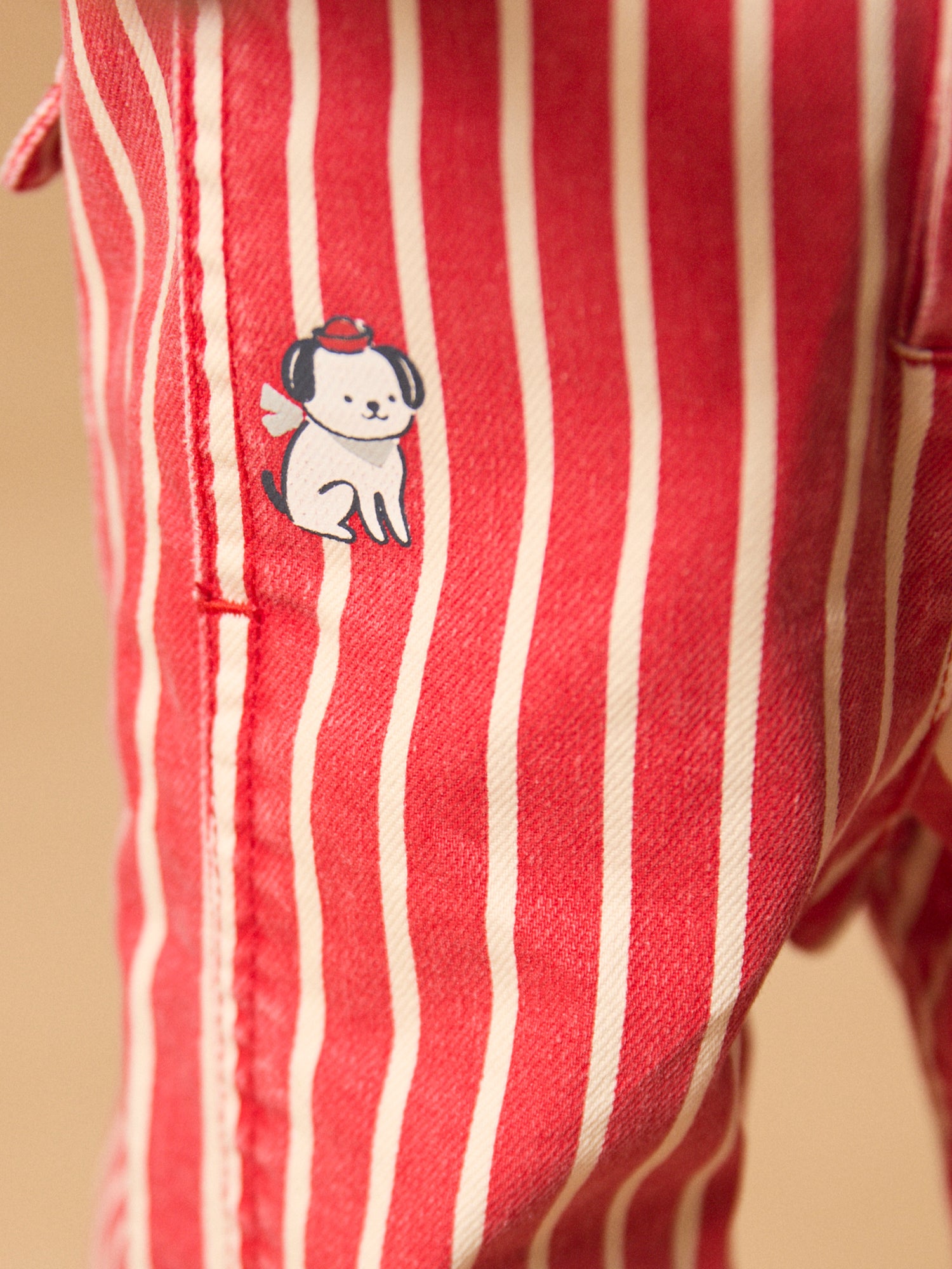 Cette salopette longue rayée est parfaite pour les petites exploratrices au look décontracté. Avec ses poches pratiques et ses imprimés de chat et chien devant et derrière, elle combine confort et style. Les bretelles ajustables, les vignettes tissées "Petit mousse" et "Baby 1987 Sergent Major", ainsi que les jambes retroussables avec boutons à pression, ajoutent des détails charmants et pratiques, tandis que l'ouverture à boutons à pression facilite l'habillage.