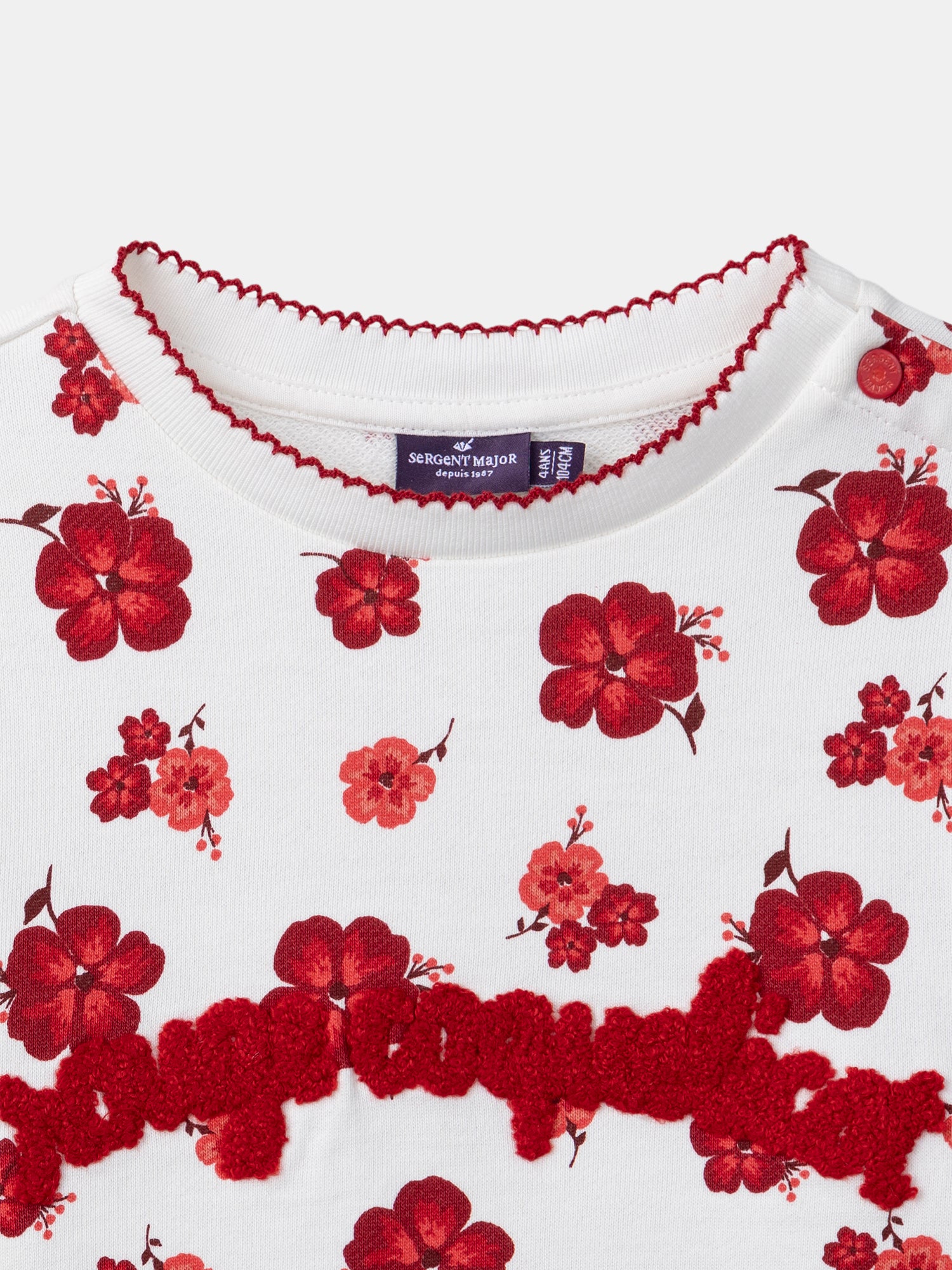 Ce sweat fleuri est parfait pour les enfants créatifs et dynamiques durant les journées fraîches. Fabriqué en tissu doux et confortable, il allie praticité et style avec son ouverture à boutons-pression à l'épaule. La fleur en sequins réversibles et le croquet contrasté au col apportent une touche ludique et raffinée.