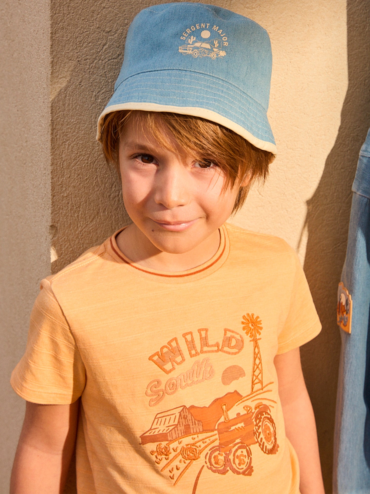 Ce t-shirt Tracteur est un excellent choix pour les amateurs de style décontracté et original. L'imprimé tracteur sur l'avant, combinant des éléments en relief et en broderie, apporte une touche ludique et dynamique. Le bord-côte rayé au col ajoute un détail supplémentaire qui complète parfaitement le look. Un basique avec une touche de fun !