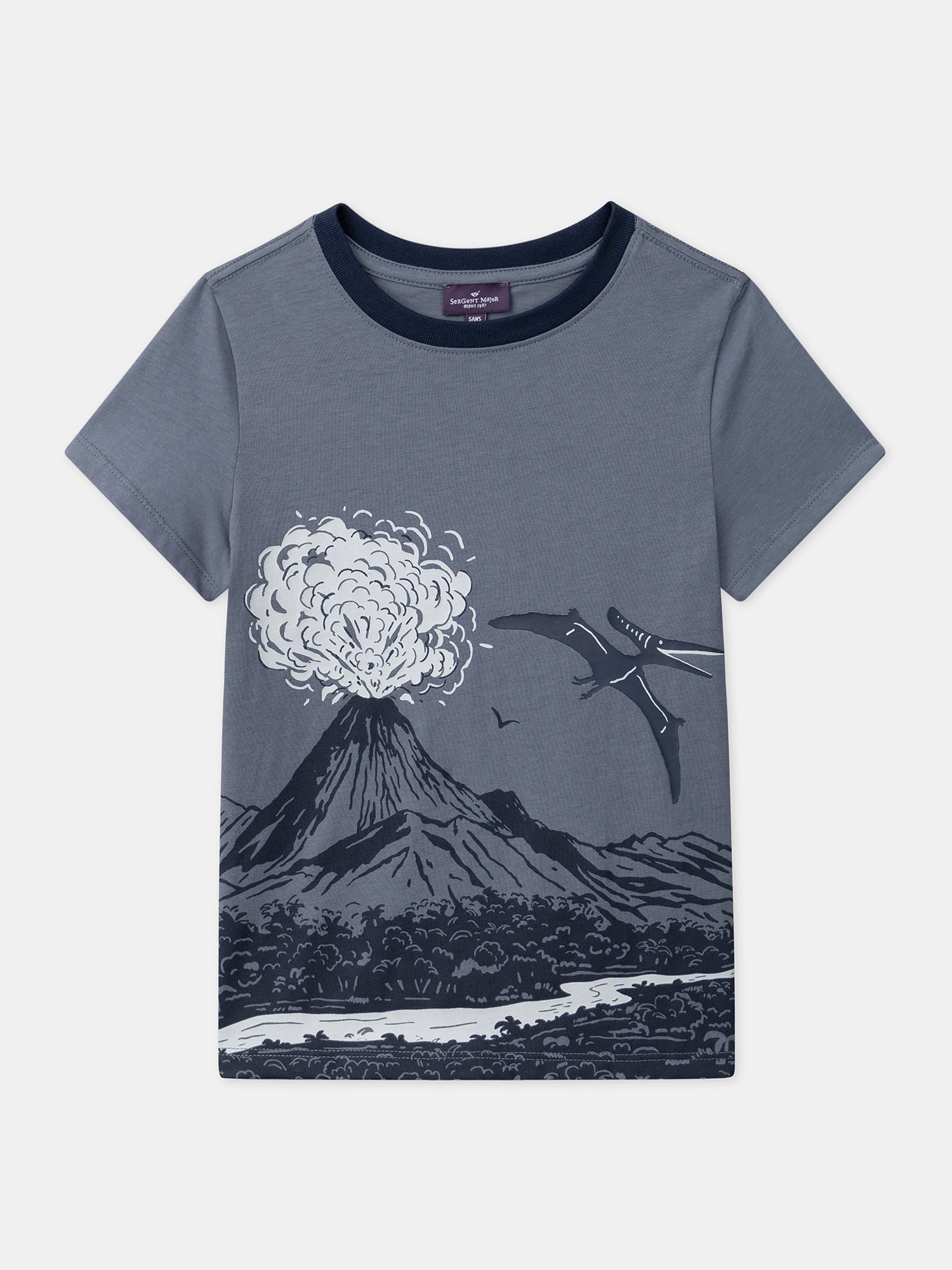 Ce t-shirt Volcan est idéal pour les petits passionnés de dinosaures, parfait pour les journées d'aventure. L'imprimé dinosaure et volcan sur le devant ajoute une touche excitante et ludique. Le bord-côte au col assure confort et maintien tout au long de la journée.