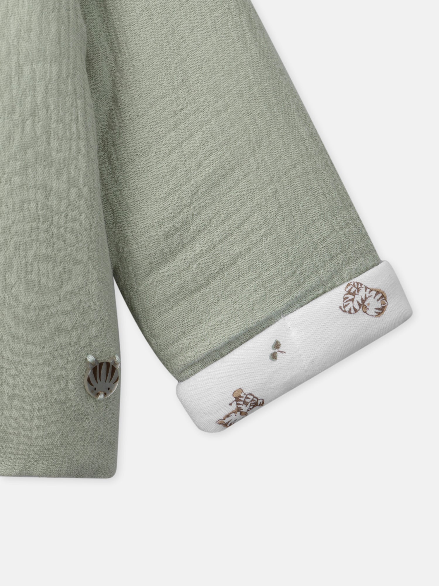 - Doublure en jersey avec imprimé zèbres dans les tons marron chocolat, beige et vert amande sur fond écru